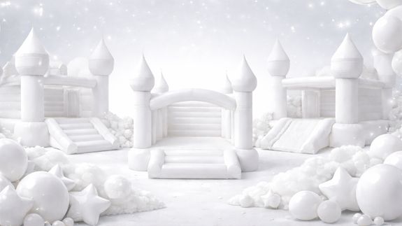 (5) The Dreamland Bouncy Castle 20x16.5x16ft:All white castle comes with big slide, climbing area, ball pit area. Price $450. If you want any custom vinyl theme added ($50) or balloon garland added ($20ft)